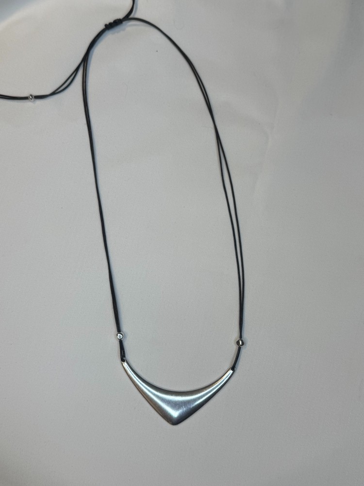 Κολιέ με δερμάτινο κορδόνι και σύμβολο από επαργυρωμένο ορείχαλκο. Αυξομειώνει με μακραμέ δέσιμο.