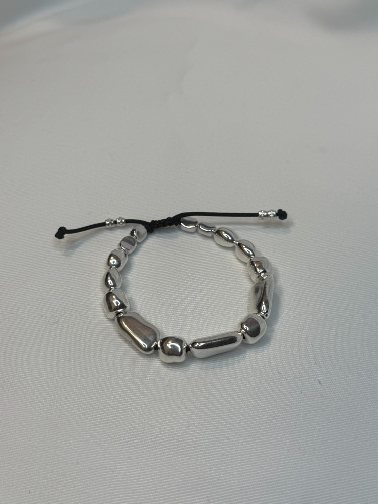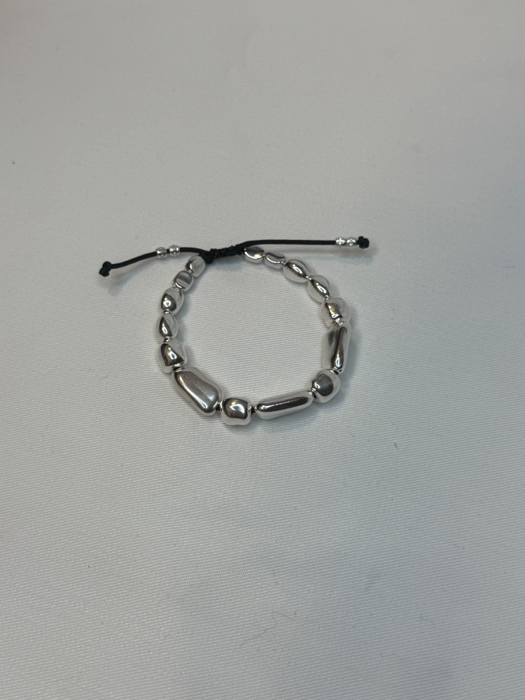 Πλεγμένο βραχιόλι με μέταλλα από επαργυρωμένο ορείχαλκο. Αυξομειώνει με μακραμε δέσιμο.