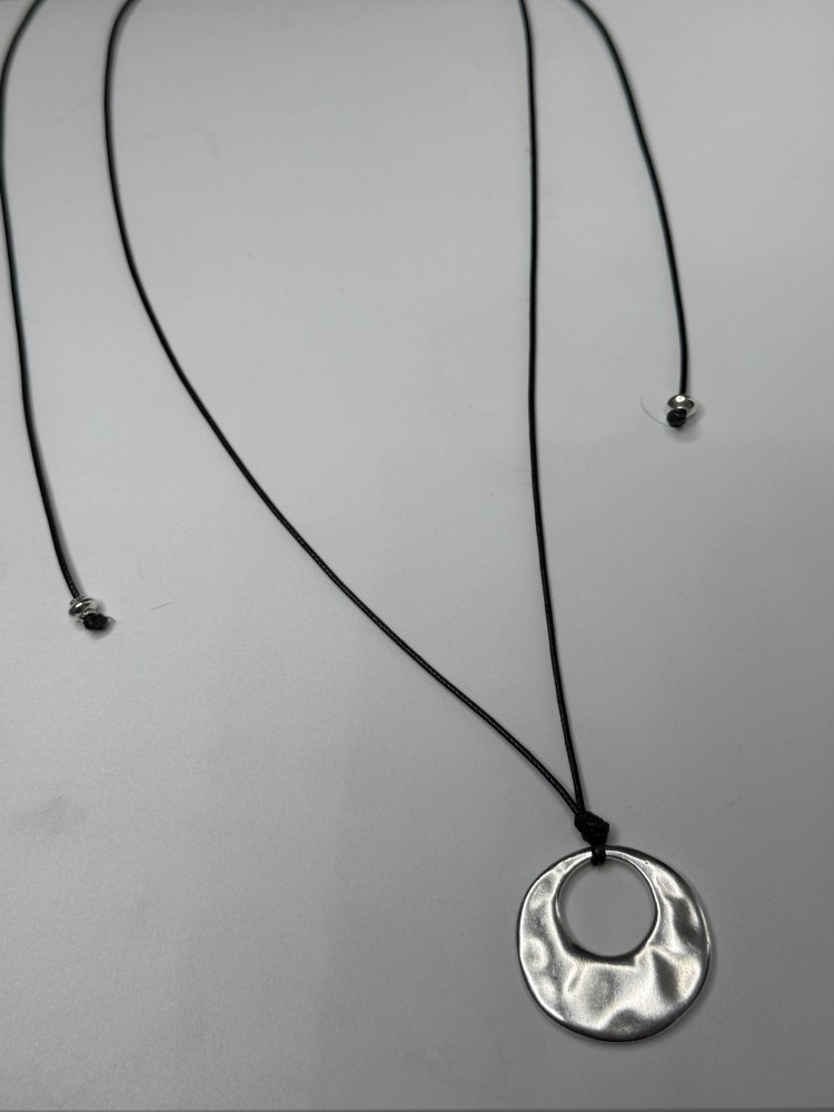 Υλικό: Κορδόνι που αυξομειώνει με μακραμέ δέσιμο και στοιχείο από επαργυρωμένο ορείχαλκο.